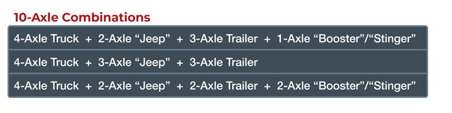 Although the exact combination of components will vary depending on your shipment’s requirements (which is why finding an experienced provider is key), here are a few ways 10-axle combinations can be formatted:
