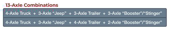- 4-axle truck + 3-axle jeep + 3-axle trailer + 3-axle booster/stinger