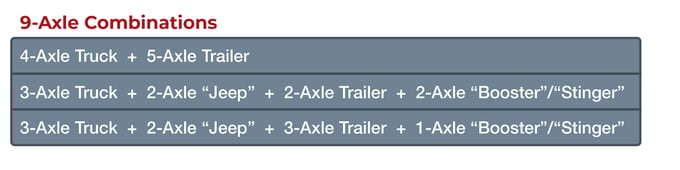Once a shipment’s weight goes above 94,000 pounds, nine total axles are needed to haul that load.