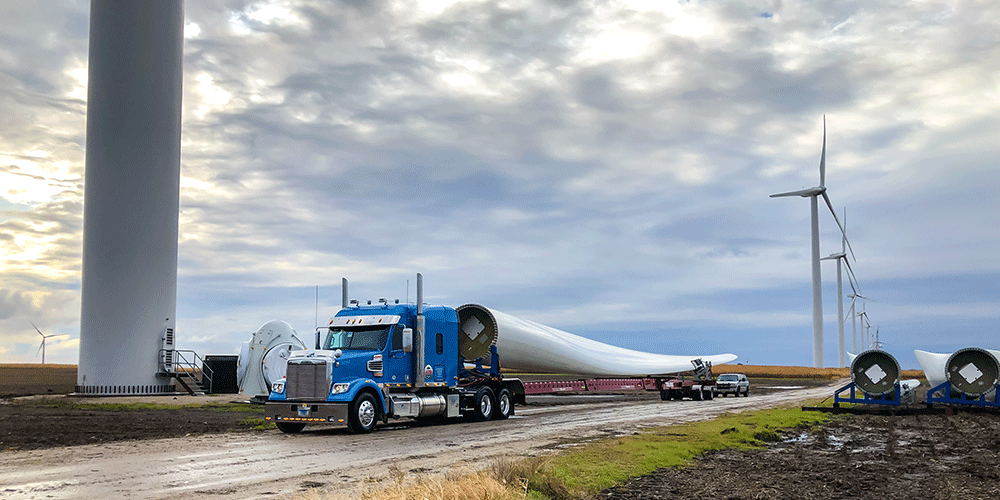 You can expect to see multi-axle RGNs used in any project that involves heavy equipment. Think cranes for bridge or wind farm construction projects. Think perimeter trailers for data center projects. And think blade and Schnabel trailers for wind projects.