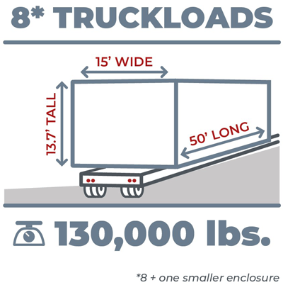 Each generator enclosure set consisted of three truckloads per enclosure set with components up to 15 feet wide, 13 feet 7 inches high, 50 feet long and weighing up to 130,000 pounds. All loads needed to be delivered just-in-time (JIT) — in a specific sequence — to facilitate the crane offload and installation at the job site.